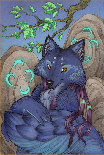 The Dreamwolf. Made with pencils, coloured in Photoshop CS. March 2006.