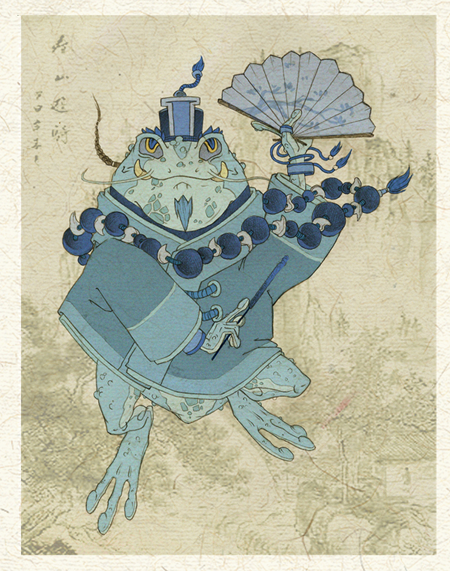Fantasy picture of a Frog Wizard. Pencil sketch coloured in Photoshop