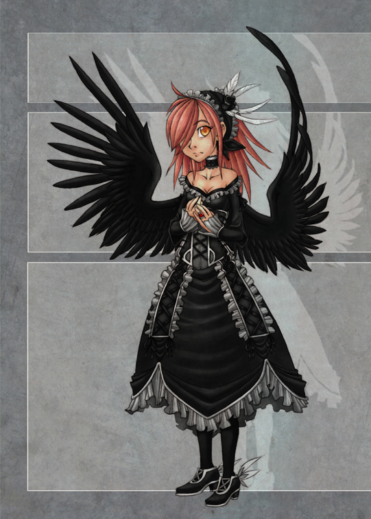 Gothic Lolita, because they are popular these days. Drawn on request. July 2007.